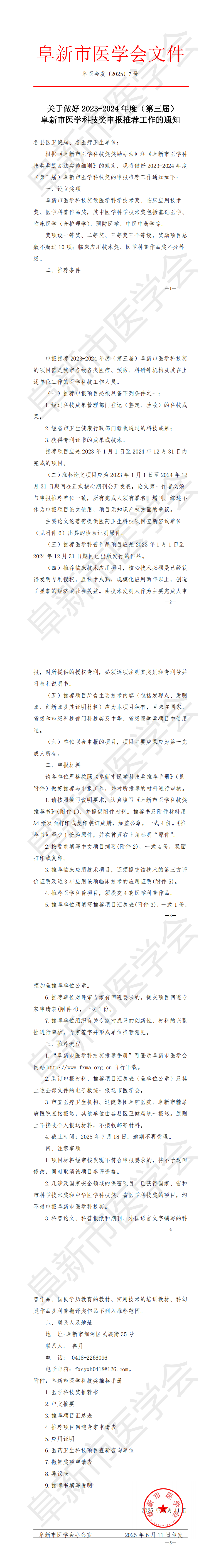 关于做好2023-2024年度阜新市医学科技奖推荐工作的通知